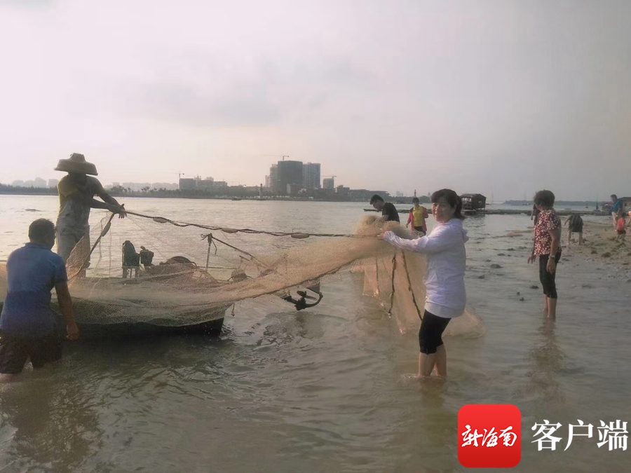 游客體驗拉網(wǎng)捕魚樂趣