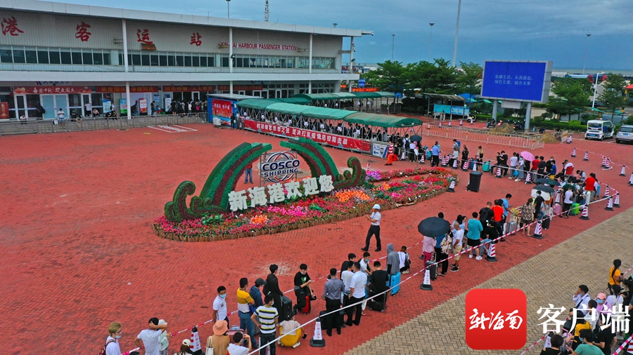 10月11日上午,新海港有序運送旅客出島。記者 汪承賢 攝
