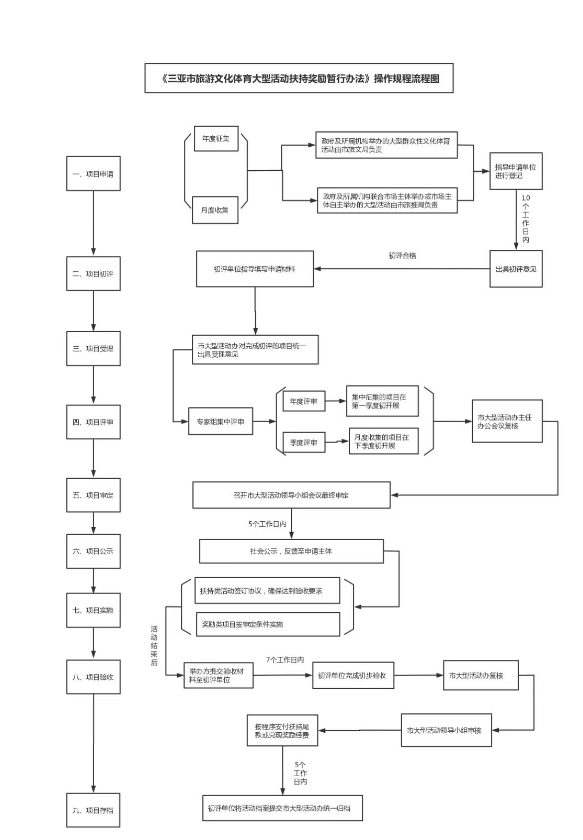 ?《三亞市旅游文化體育大型活動扶持獎勵暫行辦法》操作規程流程圖