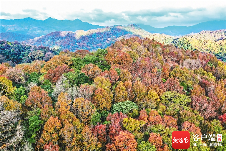 五指山市水滿鄉區域內的楓葉變紅景觀,山水相連,美不勝收。海南日報記者 于偉慧 攝