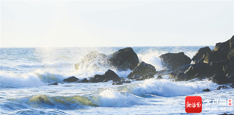 海浪沖擊峨蔓灣的黑色礁石。 海南日?qǐng)?bào)記者 陳元才 攝