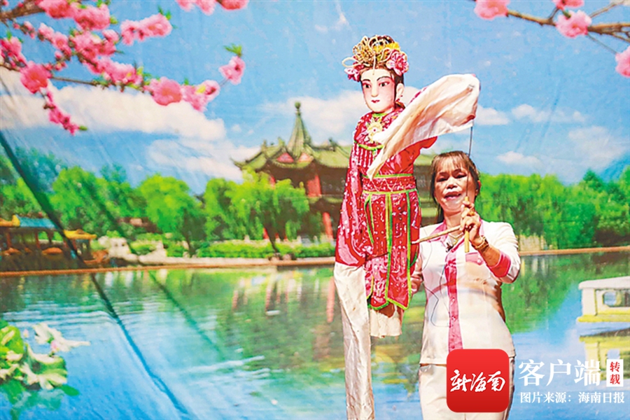 日前,臨高人偶戲匯演活動在臨高縣文瀾文化公園牌坊街開幕。袁才 攝