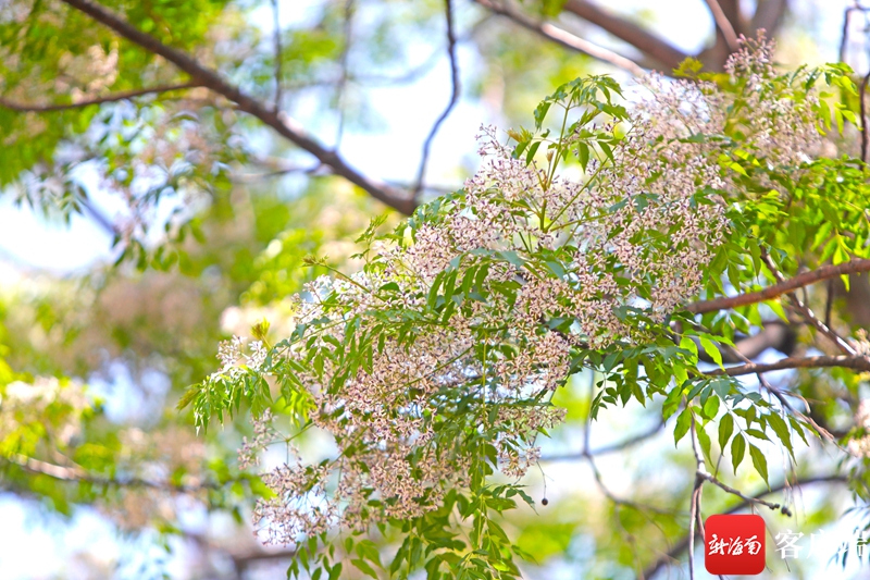 海口路旁,大樹(shù)開(kāi)著白色小花。記者 汪承賢 攝