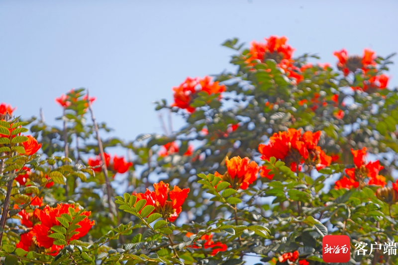 海口街頭隨處可見(jiàn)似火焰般的花兒。記者 汪承賢 攝