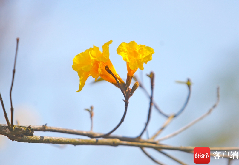在西海岸一路旁,花冠呈漏斗形的黃花風(fēng)鈴按捺不住盛開(kāi)。記者 汪承賢 攝