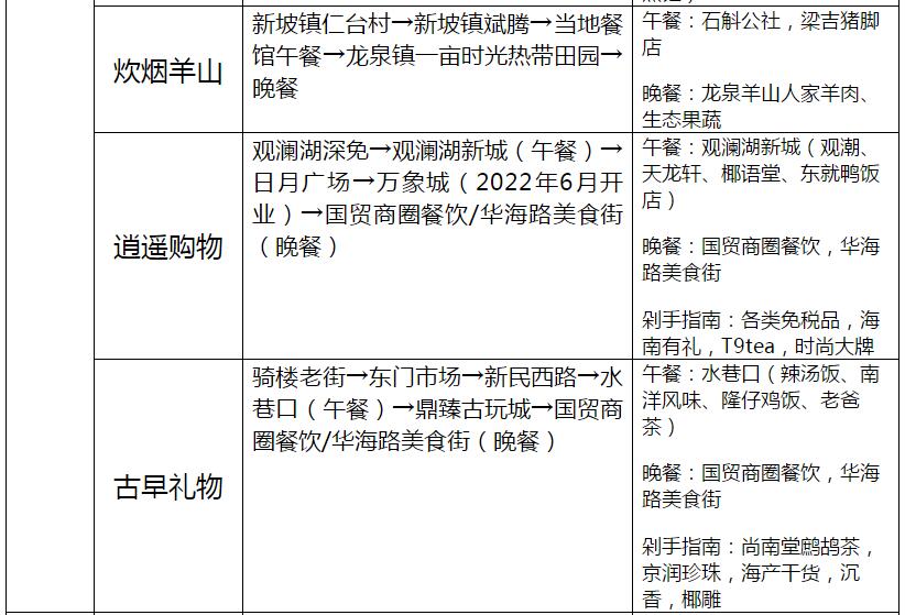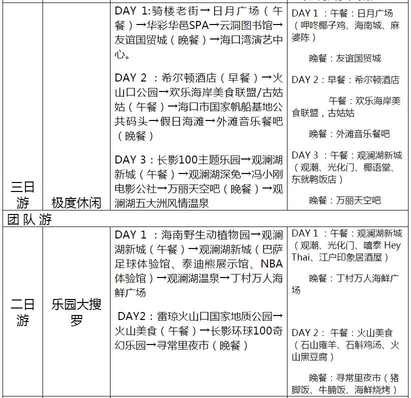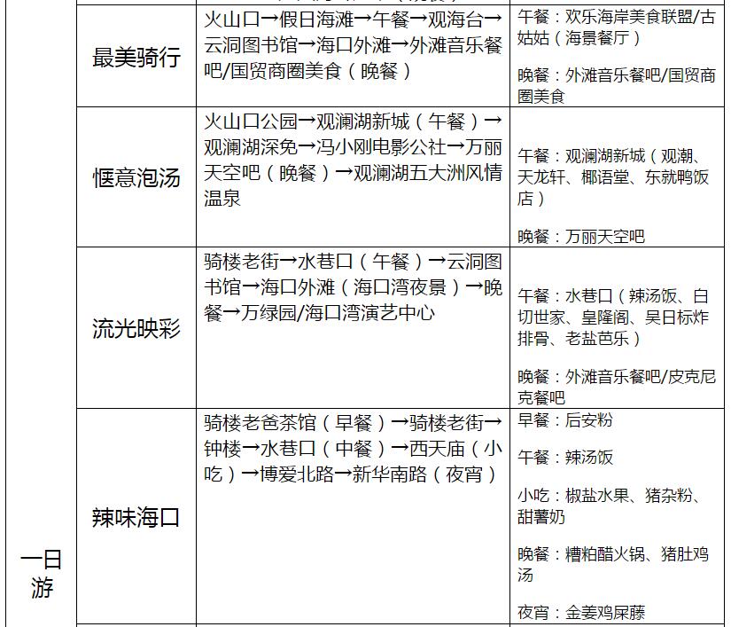 海口23條旅游線路產(chǎn)品信息一覽表