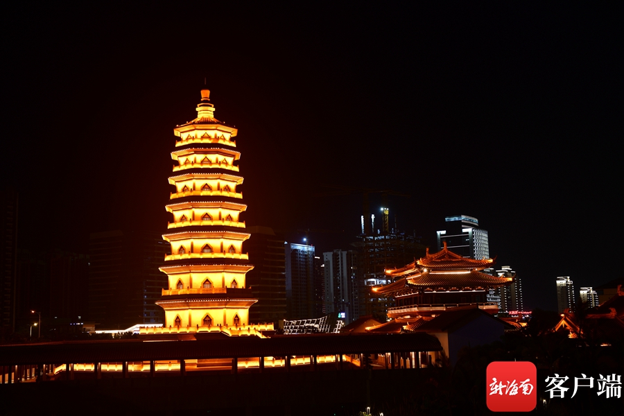 新海南客戶端、南海網、南國都市報4月10日消息 (記者 陳衛東)4月9日晚,記者拍到海口明昌塔亮燈后美輪美奐的景觀,這座曾被譽為“瓊州第一塔”的明昌塔流光溢彩,為海口又增添一個網紅打卡地。