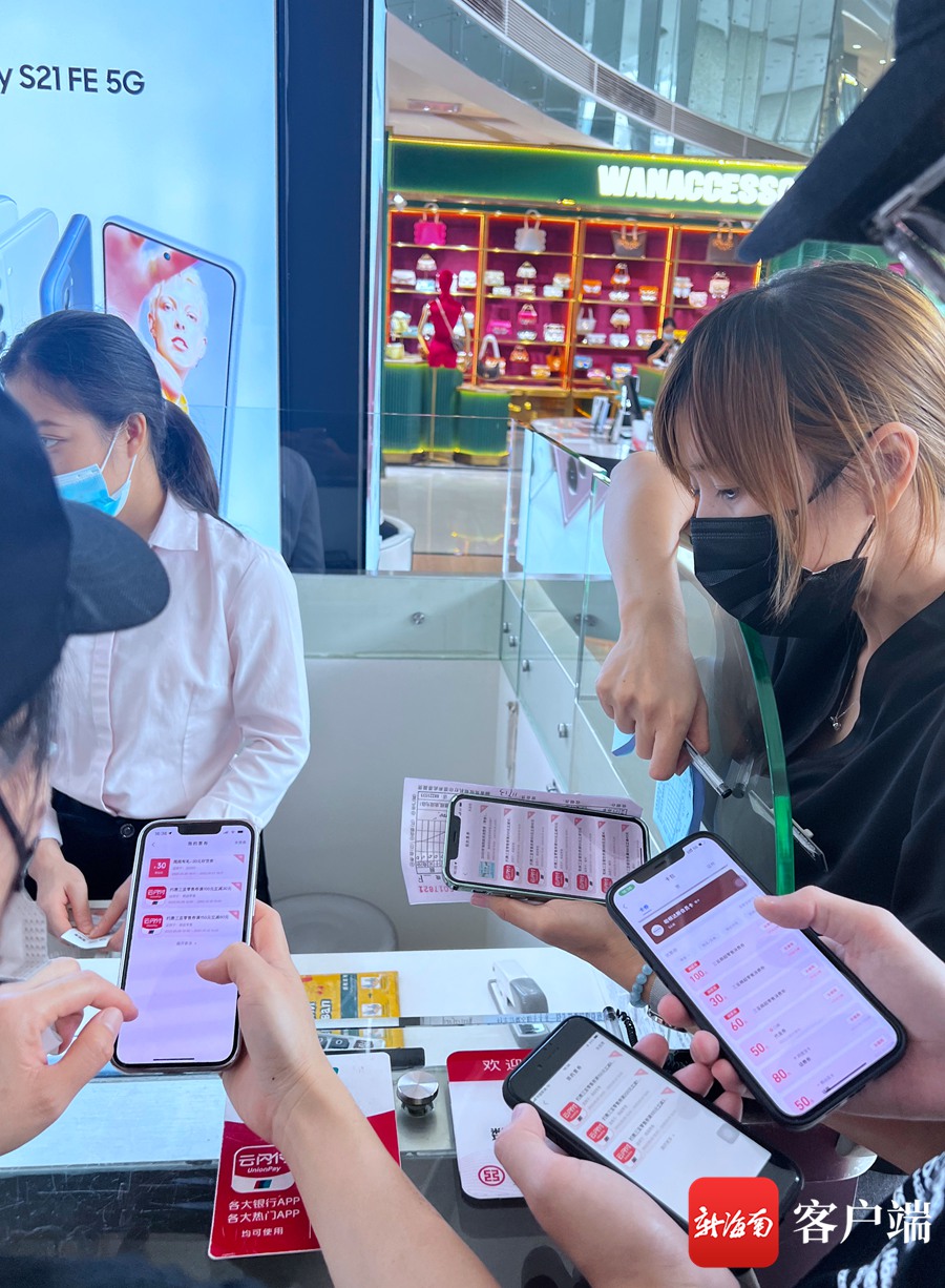 這不,一聽說有消費券可以領,在三亞互聯網雙創中心工作的李女士就做好了各種手機領券攻略。“趁著商場活動力度大,還有三亞發放的消費券可以疊加使用,喜歡的衣服、鞋子、包包統統都能收入囊中了。”一個多小時的血拼,李女士在藍海購物廣場收獲滿滿,使用消費券買單時先后減免了170元。