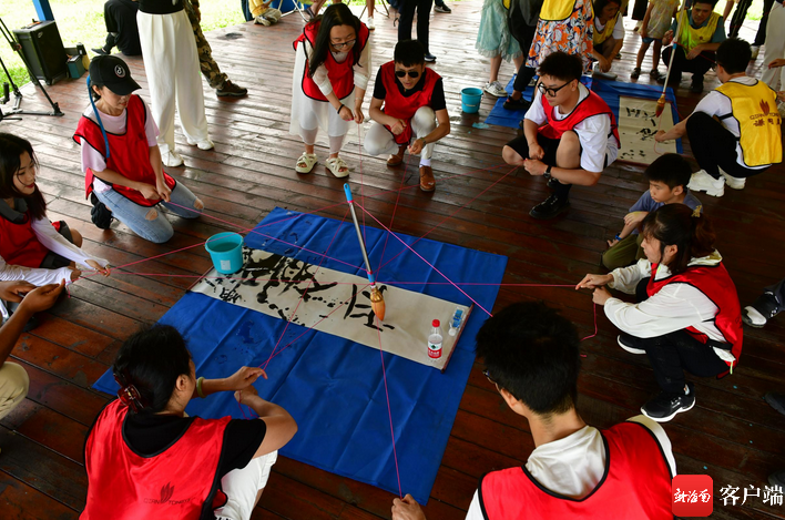 嘉賓們在齊心協力共同寫下“愛”字。記者 陳衛東攝
