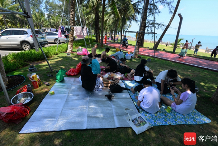 12時,在海口西海岸,市民游客在草地上露營。記者 陳衛(wèi)東 攝