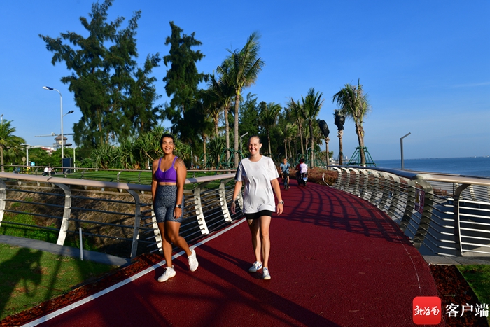 7時,在海口西海岸,市民在晨練。記者 陳衛(wèi)東 攝