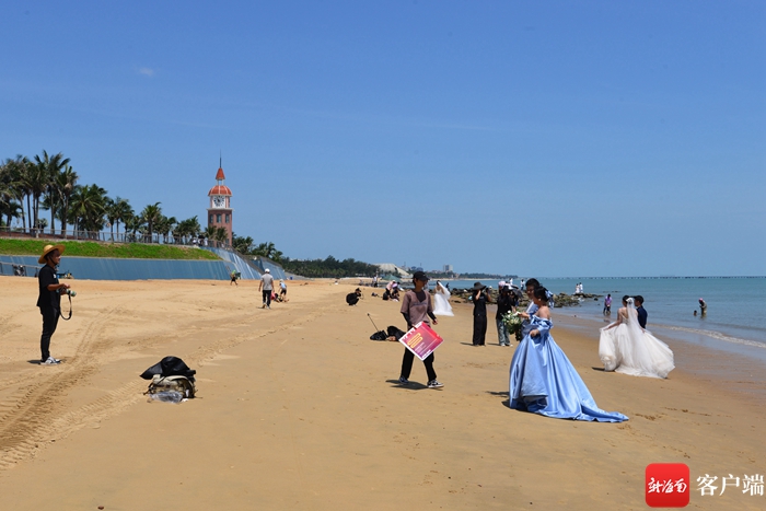 11時,在海口西海岸,新人在海邊拍婚紗照。記者 陳衛(wèi)東 攝