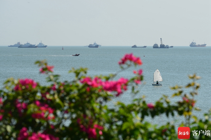 9時,在海口西海岸,帆船運(yùn)動員出海訓(xùn)練。記者 陳衛(wèi)東 攝