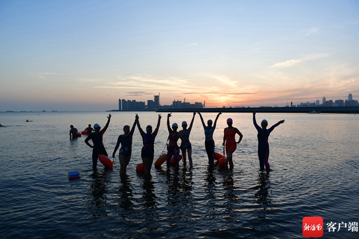6時,在海口西海岸,一支晨練隊(duì)伍下海晨泳。記者 陳衛(wèi)東 攝