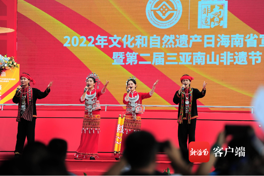 2022年文化和自然遺產日海南省宣傳展示暨第二屆三亞南山非遺節由海南省旅游和文化廣電體育廳、三亞市人民政府、五指山市人民政府聯合主辦,三亞市旅游和文化廣電體育局、三亞市旅游推廣局、三亞市崖州區人民政府、五指山市旅游和文化廣電體育局協辦,海南省非物質文化遺產保護中心、五指山市文化館、三亞南山文化旅游區共同承辦。