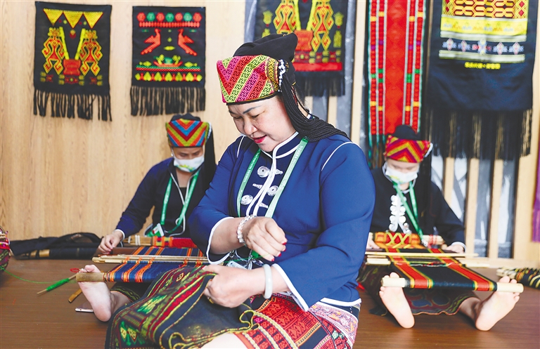 黎錦無疑是海南非遺的一顆明珠。據了解,海南在《黎族傳統紡染織繡技藝保護發展三年行動計劃(2021—2023年)》中提出,到2023年黎錦及周邊產品開發實現生活化、時尚化、國際化,成為海南自由貿易港的文化名片。而7月1日即將正式實施的《海南省非物質文化遺產規定》,則圍繞保護好、傳承好、利用好非遺這一主線,堅持立法與非遺保護精準有效銜接,堅持突出海南特色,堅持務實管用,從完善非遺保護體系、加強非遺傳承傳播、促進非遺合理利用等方面作出有特色、針對性強、可操作的規定。