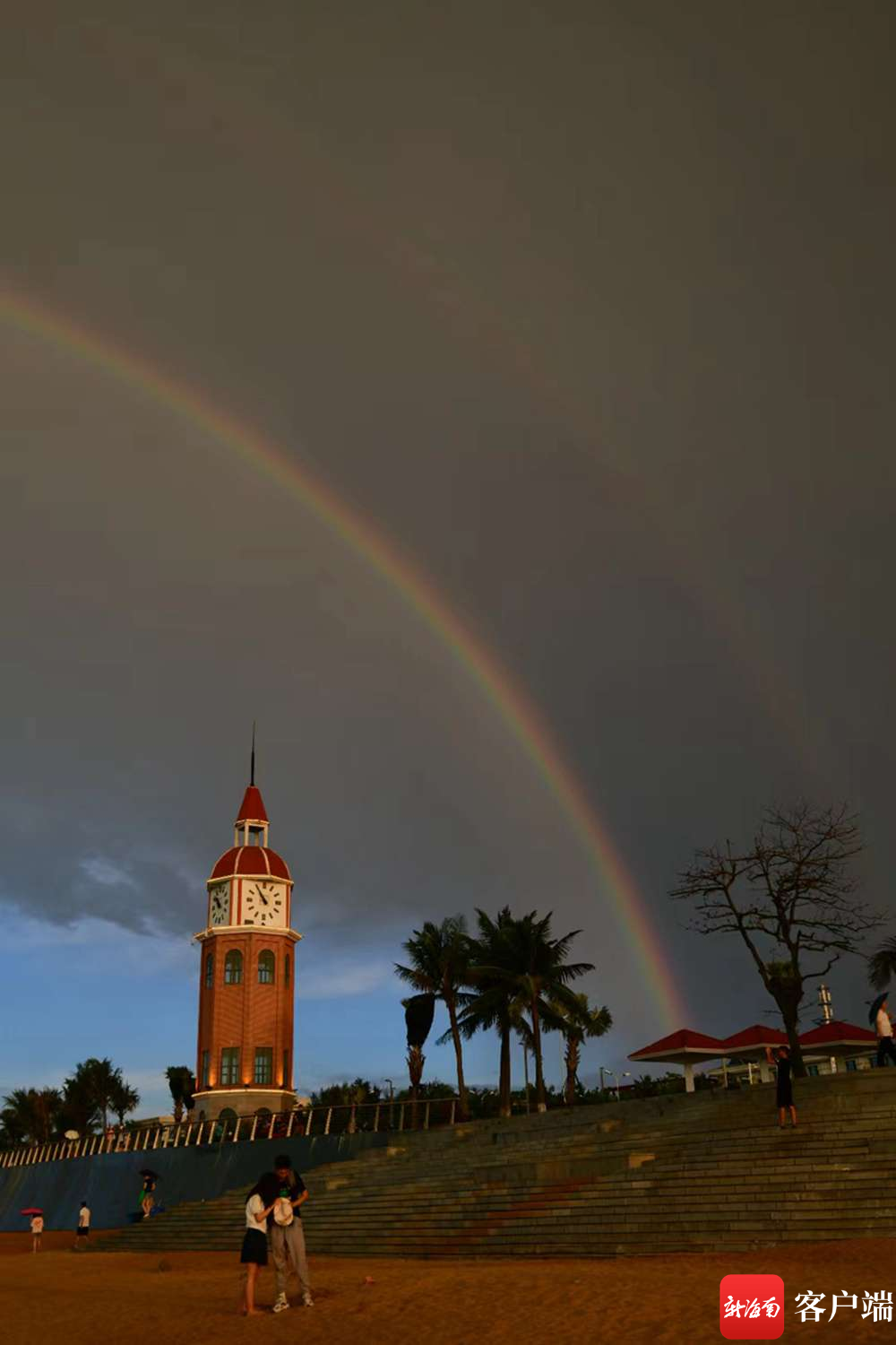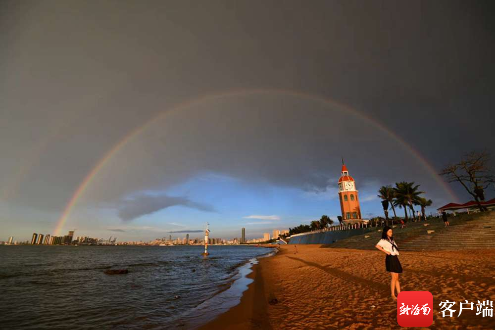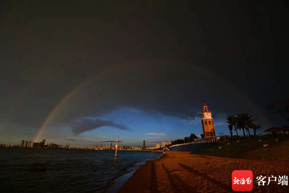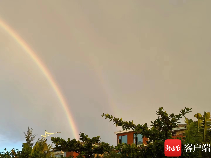 海口上空出現了“雙彩虹”+絕美晚霞