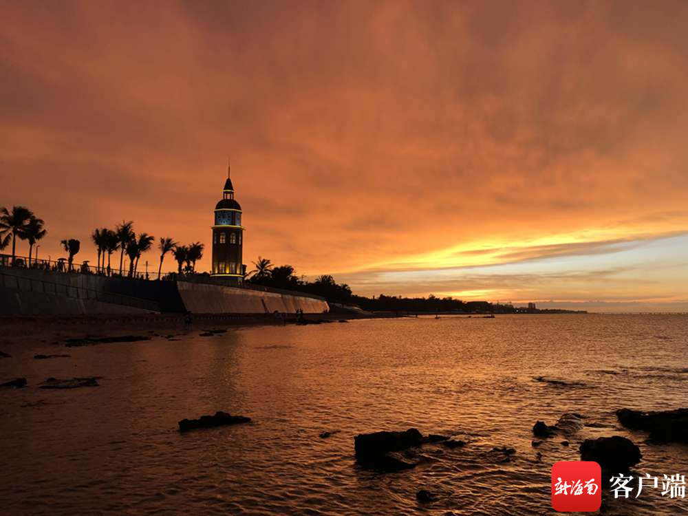 海口灣絕美晚霞。記者陳衛東攝