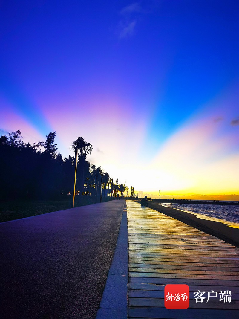 新海南客戶端、南海網、南國都市報7月13日消息(記者 汪承賢)7月13日晚7點多,海口灣的天空呈現出別樣的美,天空和云層像是大自然筆下的畫作,絢麗多彩,分外漂亮。
