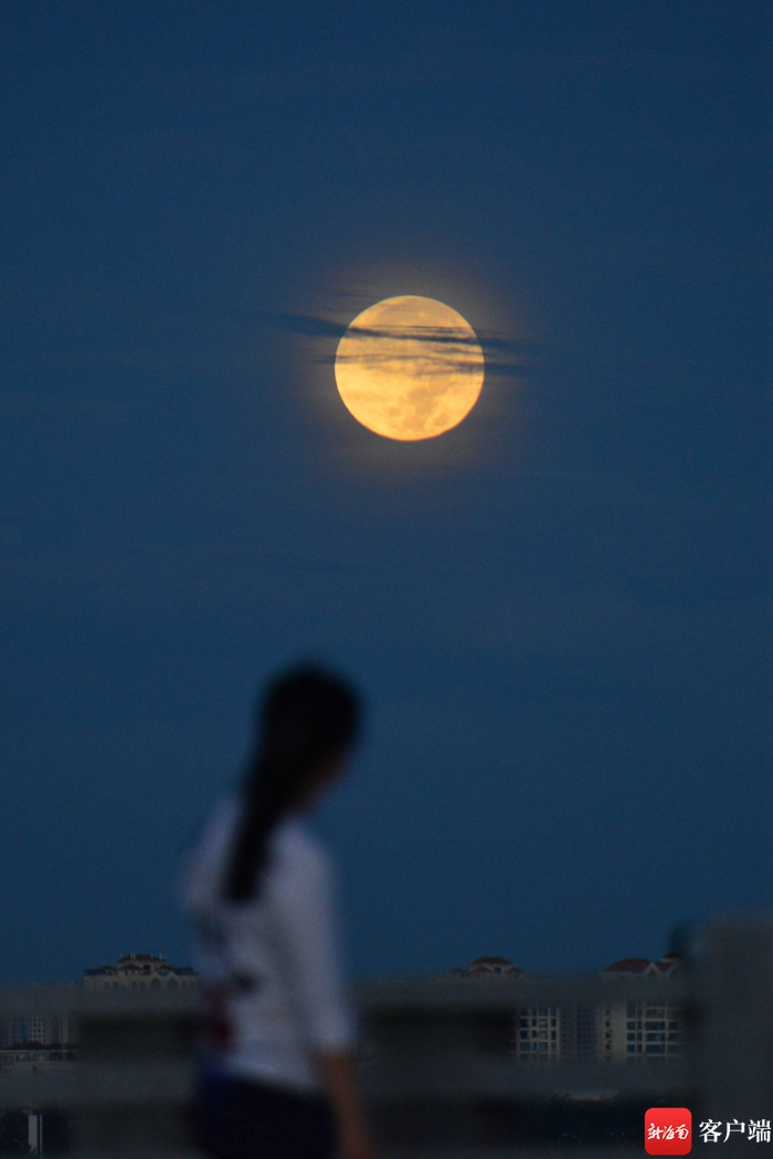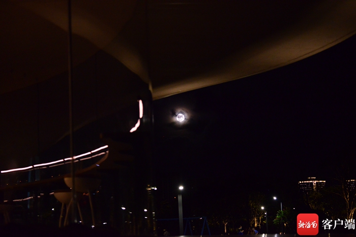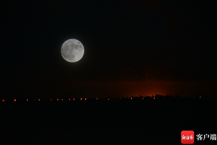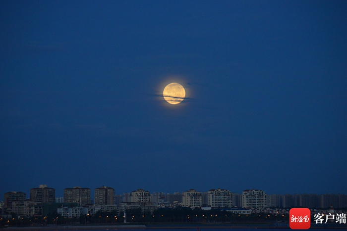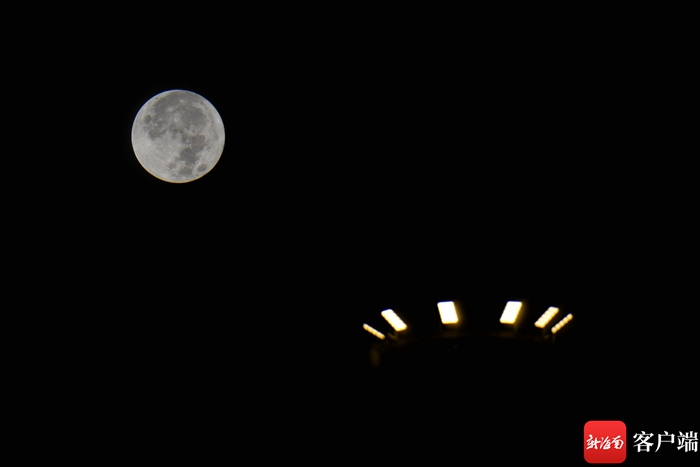 13日晚,海口天空的超級月亮。記者 陳衛東 攝