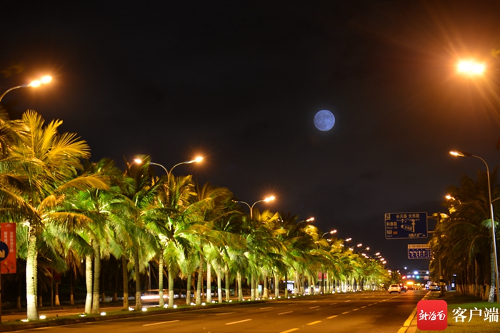 13日晚,海口天空上的超級月亮。記者 陳衛東 攝
