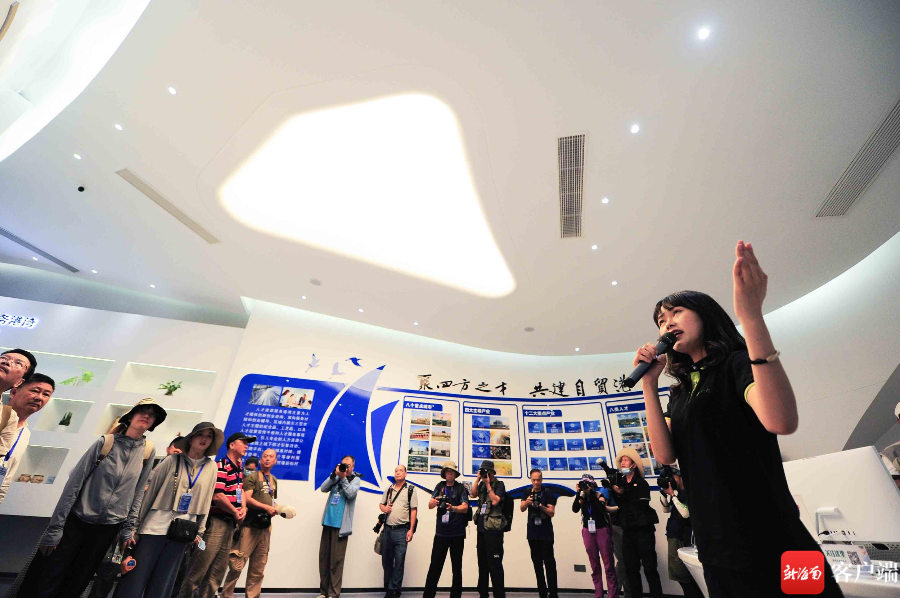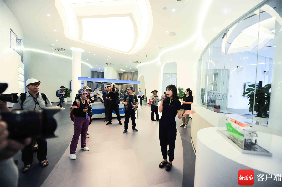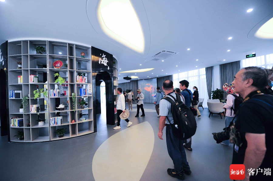 步入三亞市豐興隆黨群主題公園,綠草茵茵,林蔭蔥蘢,采風團紛紛舉起手中相機聚焦眼前綠意。穿過黨群主題廣場和文化長廊,沿路兩旁精美絕倫的主題宣傳牌讓采風團爭相按下快門定格光影中的紅色印跡。走進黨群服務中心,墻上圖文并茂地講述著紅色革命歷史和海南自貿港發展故事,采風團一邊仔細聆聽講解,一邊用鏡頭記錄下光輝歷程。