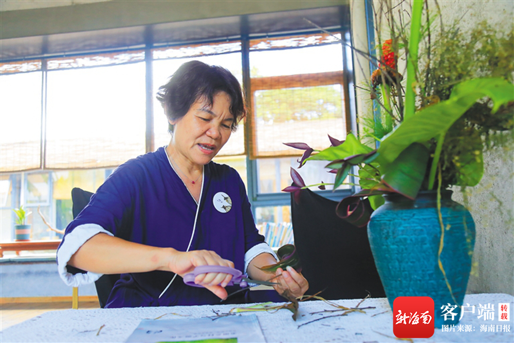 夏姐喜歡插花。海南日報記者 劉婧姝 攝