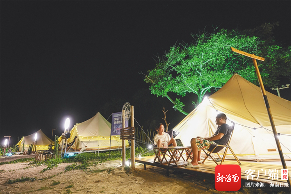 近日,游客在三亞蜈支洲島旅游區(qū)體驗(yàn)露營。海南日?qǐng)?bào)記者 武威 攝