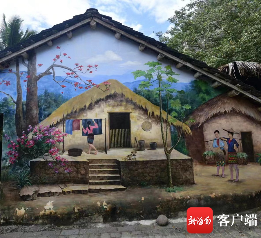 走進王下鄉浪論村,一排排整齊的黎家小院成為村里一道靚麗的風景線,墻上具有濃郁風情的繪畫讓人眼前一亮,當地黎族村民將制陶、織錦、釀酒等黎族生產生活場景融入墻繪,黎族文化融入進黎族特色“船型屋”,成為一處“流動的黎族文化博物館”。
