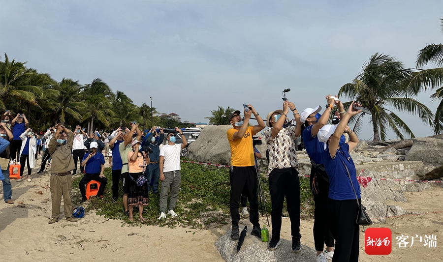 記者在淇水灣看到,航天愛好者與廣大市民游客早早就在海灘上等候火箭升空,為能有最佳的觀看體驗感,他們都拿著各式各樣的“裝備”,揮舞著五星紅旗,共同見證火箭發射精彩瞬間。