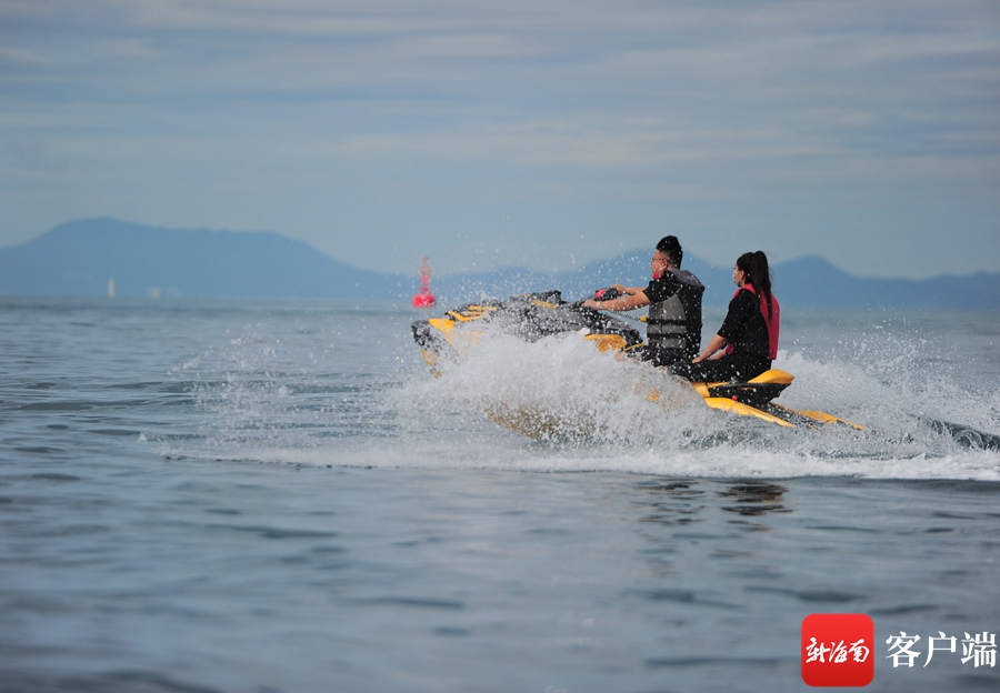 11月8日,海南三亞,游客乘坐摩托艇出海游玩。記者沙曉峰攝