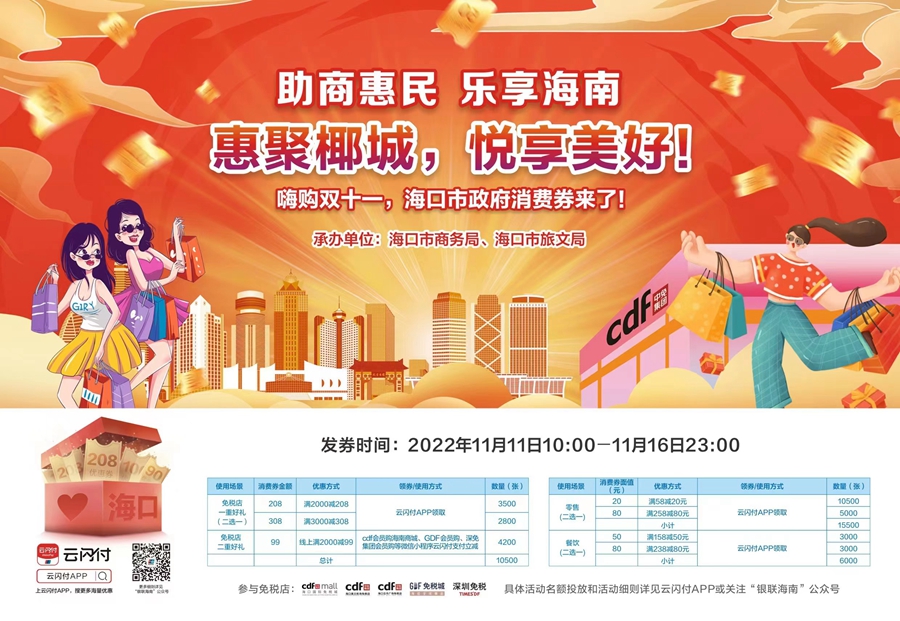 11月11日至16日,海口又有消費(fèi)券發(fā)放,快看領(lǐng)券攻略→