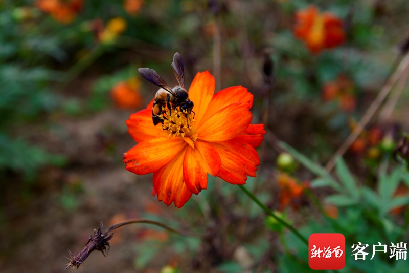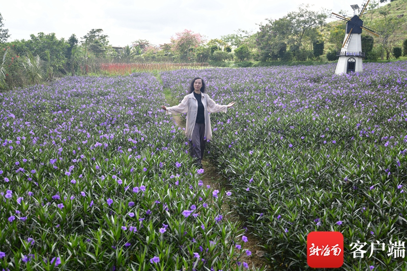 文化名家體驗官徜徉在屯昌夢幻香山共享農莊的花海中。記者 陳衛東 攝
