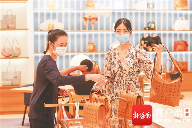 ?12月9日,在cdf三亞國(guó)際免稅城,游客在選購(gòu)手提包。