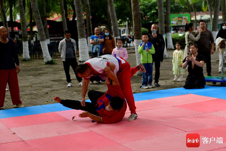 萬綠園的摔跤表演。記者 陳衛東攝