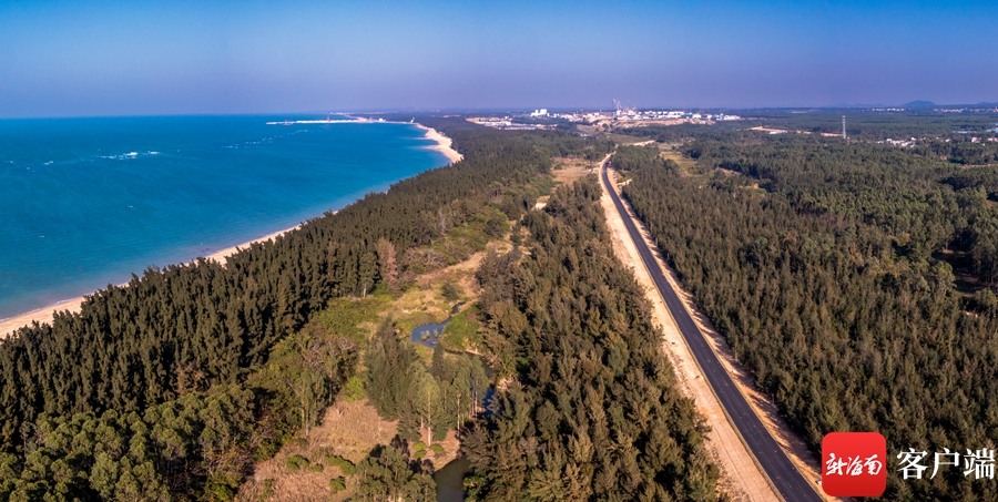 新海南客戶端、南海網(wǎng)、南國都市報2月13日消息(記者 劉孫謀)當(dāng)無人機(jī)穿越碧綠的海水,俯瞰在木麻黃林間的昌江旅游公路,在昌江海尾濕地公園路段,路面已經(jīng)鋪上瀝青。行走在該路段時,不僅可以享受徐徐海風(fēng)吹來,還能觀看越冬水鳥以及林鳥。夕陽下,濕地里成群結(jié)隊(duì)的白鷺在此覓食,白骨頂雞在濕地里覓食,人與動物近距離相處,守望著這優(yōu)美生態(tài),晚霞余暉海天一色。