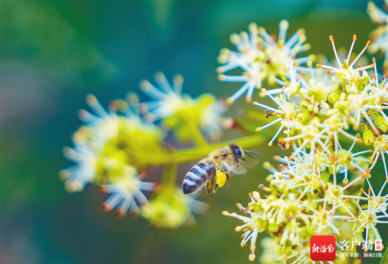 蜜蜂正在荔枝花上采蜜。海南日報記者 陳元才 攝