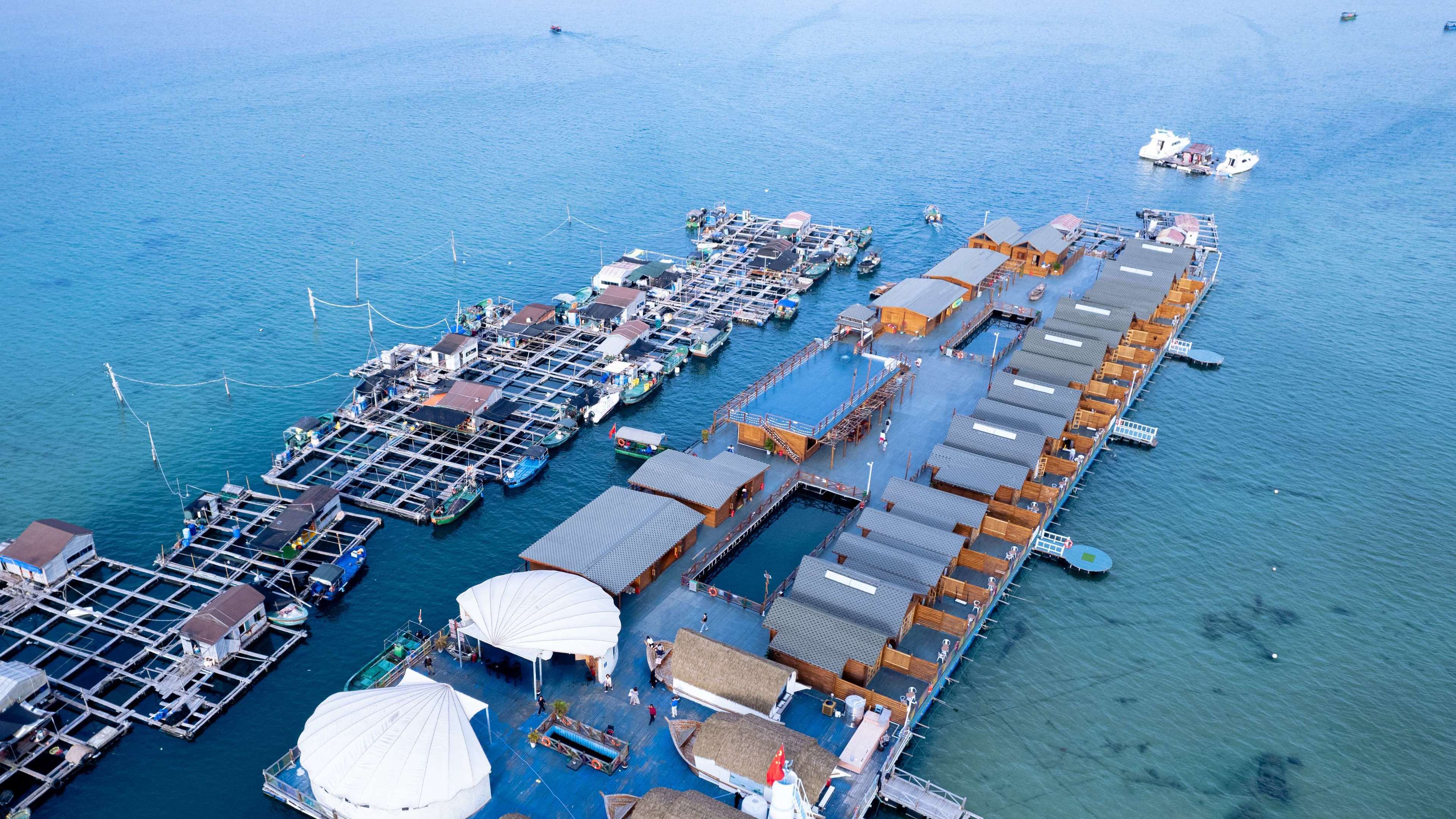 位于陵水新村鎮的海南省首家海上共享漁莊,是將廢棄養殖漁排升級改造,以疍家人海上生活體驗為特色,為游客提供集疍家文化體驗、海上民宿度假、餐飲娛樂休閑等功能于一體的共享漁莊。