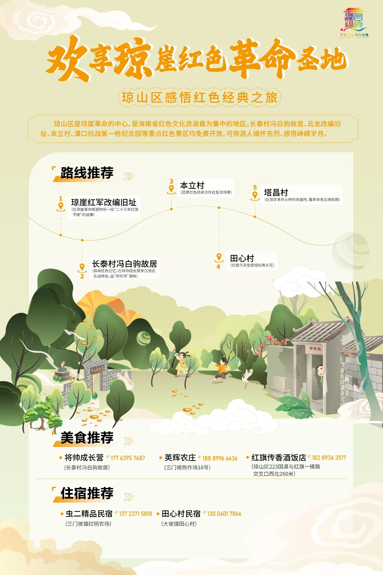 瓊崖紅軍改編舊址——長泰村馮白駒故居——本立村——田心村——塔昌村