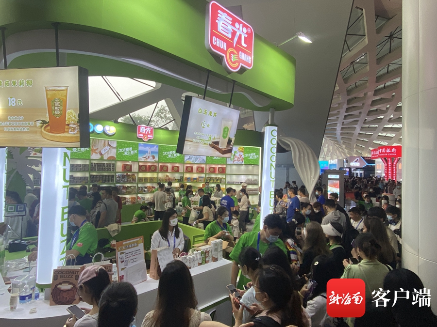 在迎賓大廳內,春光集團的展位迎來了眾多消費者的光臨,不少島外游客更是對其諸多椰制產品贊不絕口,選擇買上幾袋帶回給家人朋友;在3號館高端食品保健品館內,該集團還打造了“隨時椰”飲品小站,帶來一款全新的茶飲品類——“椰茶”,如竹蔗椰青水、椰子糖綿云美式、白玉龍井多款原創(chuàng)產品,吸引了眾多茶飲愛好者的打卡拍照,現場銷售十分火爆。