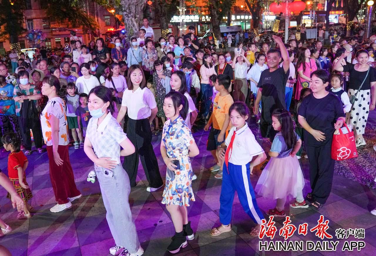 4月17日,在五指山市通什鎮(zhèn)的三月三廣場(chǎng),市民游客參與到共同舞中。海南日?qǐng)?bào)記者 李天平 攝