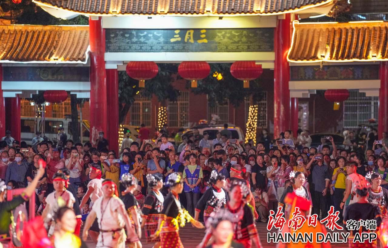 4月17日,在五指山市通什鎮(zhèn)三月三廣場(chǎng),眾多市民游客前來觀看千人共同舞。海南日?qǐng)?bào)記者 李天平 攝