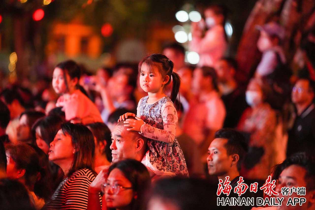 4月17日,在五指山市通什鎮(zhèn)三月三廣場(chǎng),小朋友觀看千人共同舞。海南日?qǐng)?bào)記者 李天平 攝