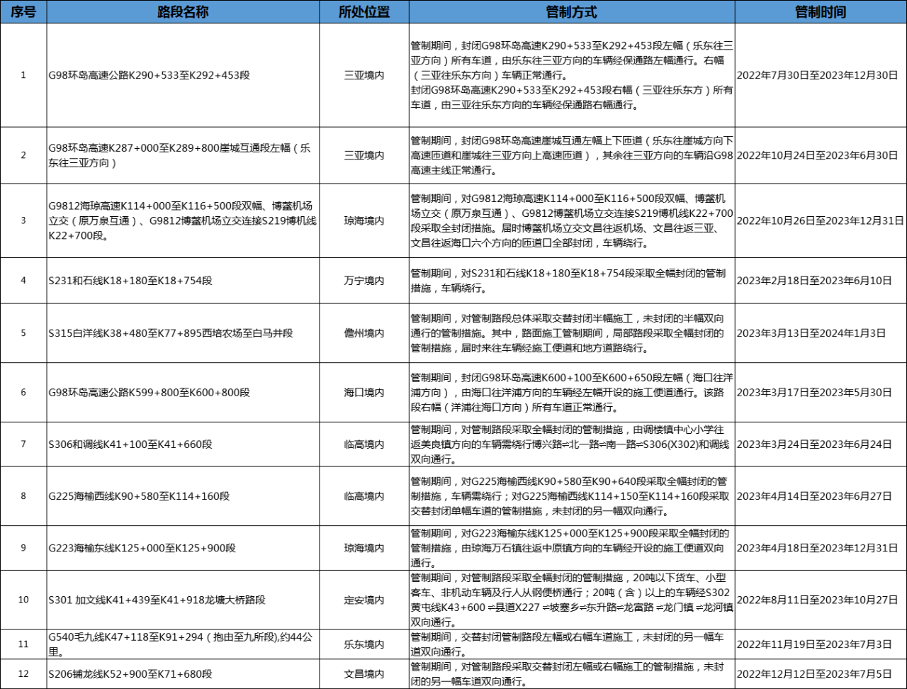 4月29日至5月2日的10時(shí)-12時(shí):G98環(huán)島高速東線海口至定安路段(海口往定安方向)、G98環(huán)島高速西線大豐路段(海口往澄邁方向)、G98環(huán)島高速東線萬(wàn)寧至陵水路段(往三亞方向)、G98環(huán)島高速三亞繞城段(雙向)將處于交通量高鋒時(shí)段。