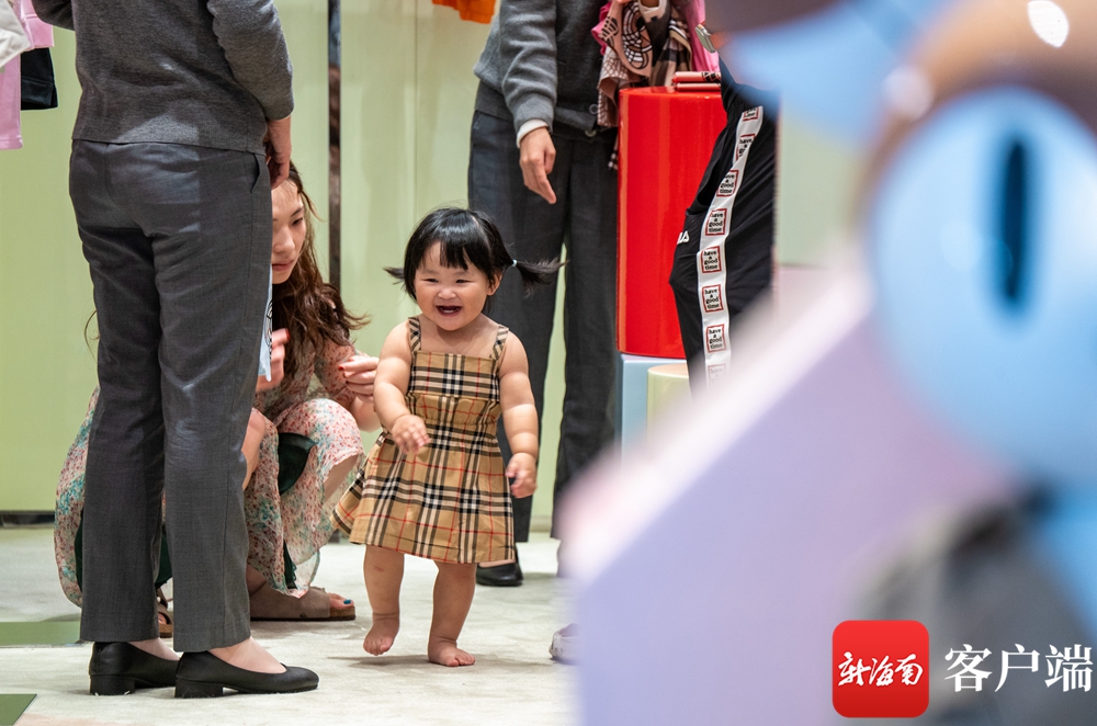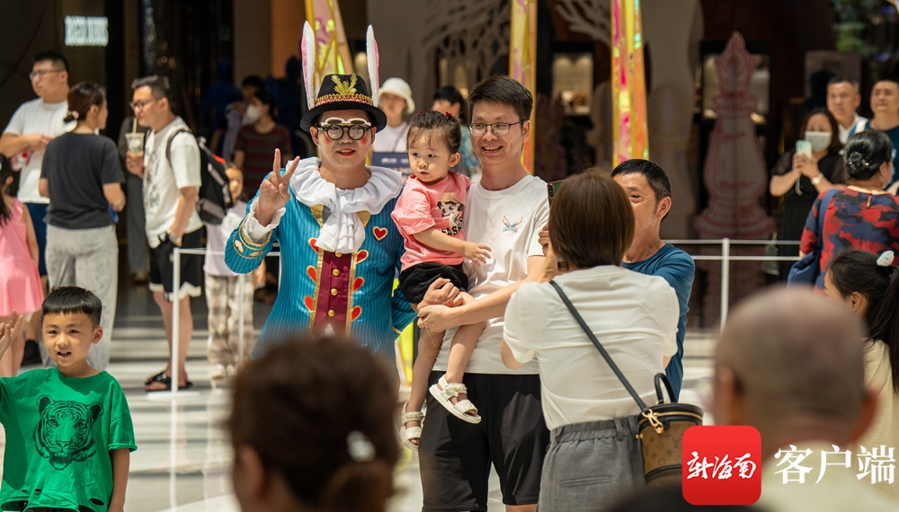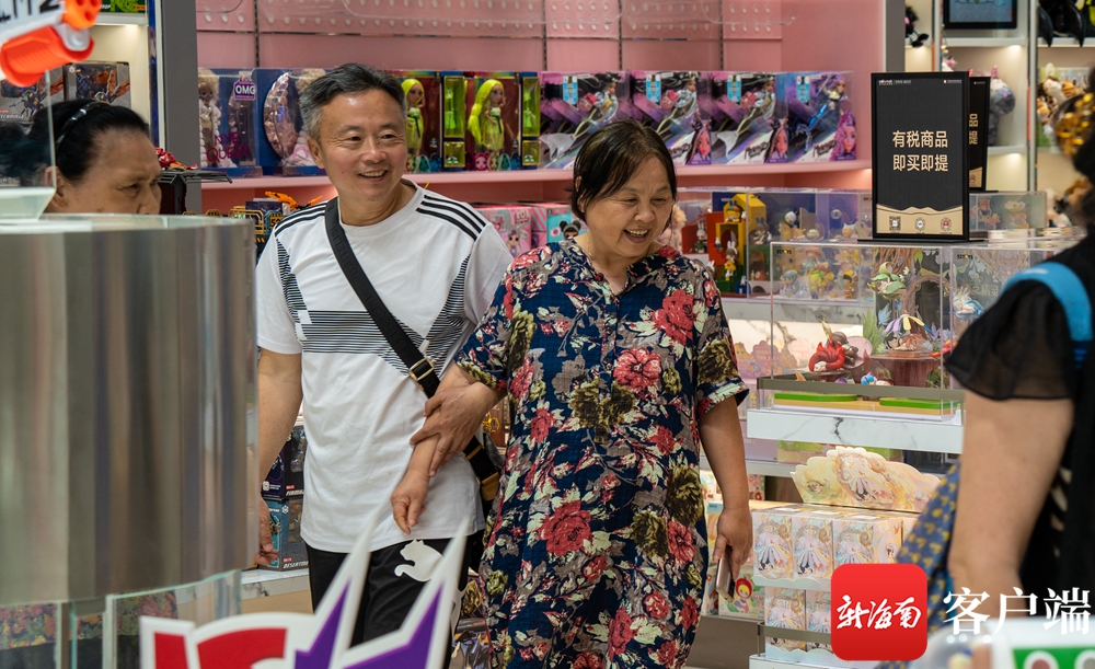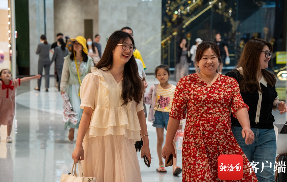 游客開心地游逛cdf海口國際免稅城。劉孫謀 攝