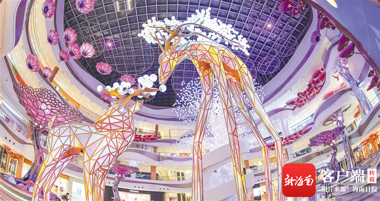 霧氣彌漫的神秘山巔、月光鋪灑的巖石海岸、靈蝶起舞的水上森林、神鹿馳騁的繁花山谷……走進海口國際免稅城一樓的天際秘林主題中庭,你會立即被建設者結合海南地域特點營造出的沉浸式購物空間吸引,瞬間體會到時尚感。