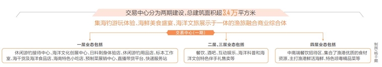 交易中心分為兩期建設,總建筑面積超3.4萬平方米,計劃打造集海釣游玩體驗、海鮮美食盛宴、海洋文旅展示于一體的漁旅融合商業綜合體。目前,一期改造項目已完成建設,二期主要針對完善休閑漁業業態,借助國家級漁港經濟區建設,融合漁業一二三產,打造三亞西部的娛樂綜合體,吸引全國乃至全球游客體驗瓊島特色的“漁業+旅游”,豐富我省旅游業態,吸納更多就業,提高百姓收入,為當地創造更多產值。