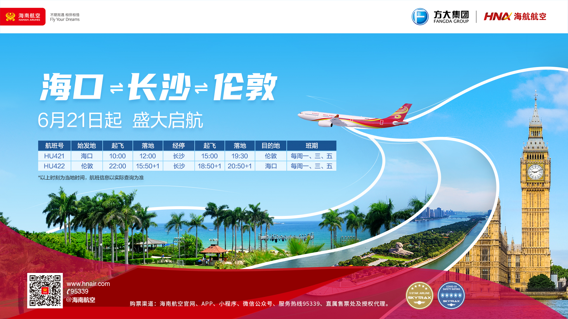 ?海南航空計劃于6月21日起開通海口?長沙?倫敦航線。海南航空供圖