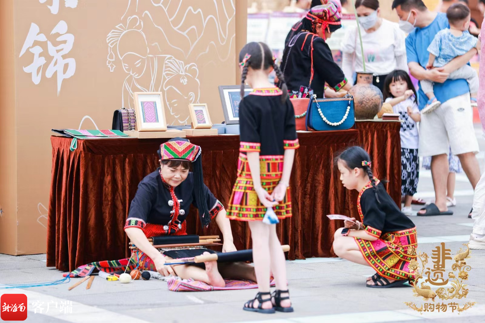 此次購物節設置非遺市集展銷及“主播帶你購”線上帶貨主題活動,市民還可以參加趣味活動,以及現場了解觀看黎錦、藤竹編、黎陶等非遺項目。海南非遺傳承人、非遺工坊、老字號企業和非遺相關企業等紛紛亮相當天的非遺市集展銷。