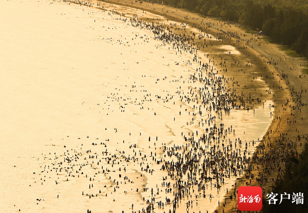 6月22日,眾多游客市民在三亞灣“洗龍水”。記者 沙曉峰 攝
